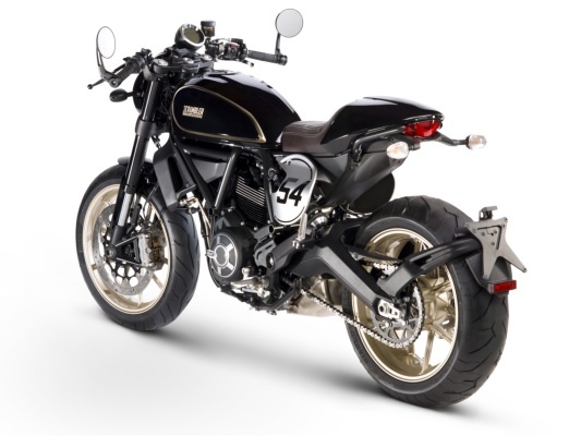 Комплектация Ducati Scrambler Cafe Racer оснащена механической коробкой передач, 0.8 литровым двигателем (75 л.с.) с расходом топлива 5 литров на 100 км. Стоимость данного мотоцикла составляет 789 000 руб.
